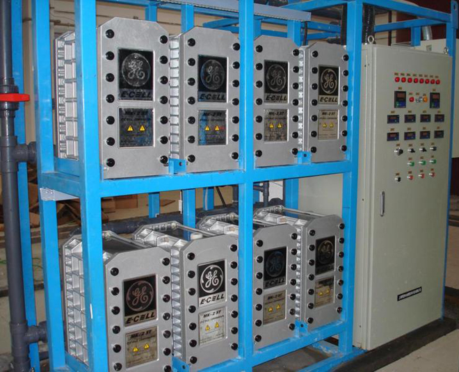電除離子系統(tǒng)(EDI) EDI(Electrodeionization)技術將電滲析技術和離子交換技術有機地結合在一起,可有效地去除水中微量的電解質(zhì)離子雜質(zhì),連續(xù)24小時制取高品質(zhì)純水,具有安裝簡單、操作維護方便、無需酸堿再生、不污染環(huán)境等優(yōu)點。 工作原理 EDI膜堆是由夾在兩個電極之間一定對數(shù)的單元組成。在每個單元內(nèi)有兩類不同的室:待除鹽的淡水室和收集所除去雜質(zhì)離子的濃水室。淡水室中用混勻的陽、陰離子交換樹脂填滿,這些樹脂位于兩個膜之間:只允許陽離子透過的陽離子交換膜及只允許陰離子透過的陰離子交換膜。 樹脂床利用加在室兩端的直流電進行連續(xù)地再生,電壓使進水中的水分子分解成H+及OH-,水中的這些離子受相應電極的吸引,穿過陽、陰離子交換樹脂向所對應膜的方向遷移,當這些離子透過交換膜進入濃室后,H+和OH-結合成水。這種H+和OH-的產(chǎn)生及遷移正是樹脂得以實現(xiàn)連續(xù)再生的機理。 當進水中的Na+及CI-等雜質(zhì)離子吸咐到相應的離子交換樹脂上時,這些雜質(zhì)離子就會發(fā)生象普通混床內(nèi)一樣的離子交換反應,并相應地置換出H+及OH-。一旦在離子交換樹脂內(nèi)的雜質(zhì)離子也加入到H+及OH-向交換膜方向的遷移,這些離子將連續(xù)地穿過樹脂直至透過交換膜而進入濃水室。這些雜質(zhì)離子由于相鄰隔室交換膜的阻擋作用而不能向?qū)姌O的方向進一步地遷移,因此雜質(zhì)離子得以集中到濃水室中,然后可將這種含有雜質(zhì)離子的濃水排出膜堆。 系統(tǒng)特點 ⊙ 產(chǎn)水水質(zhì)高而穩(wěn)定。 ⊙ 連續(xù)不間斷制水,不因再生而停機。 ⊙ 無需化學藥劑再生。 ⊙ 設想周到的堆疊式設計,占地面積小。 ⊙ 操作簡單、安全。 ⊙ 運行費用及維修成本低。 ⊙ 無酸堿儲備及運輸費用。 ⊙ 全自動運行,無需專人看護。 技術性能 EDI進水指標 為防止裝置出現(xiàn)污堵,減少其運行壽命,EDI對進水水質(zhì)有一定的要求,一般采用RO的滲透水作為進水 |